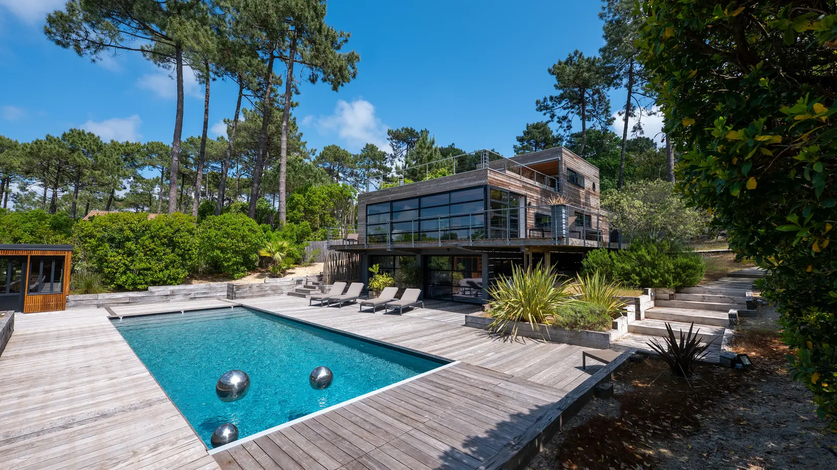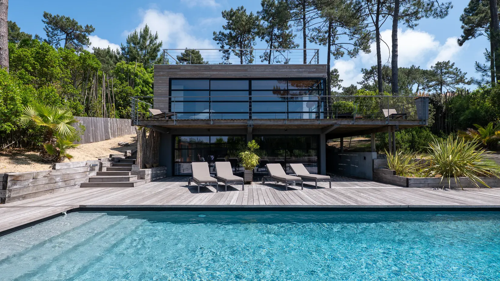 La Villa Mogador est née d’un amour pour la lumière du Cap Ferret, le parfum des pins et le silence élégant des dunes.